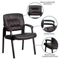 BROWN LEATHERSOFT EXECUTIVE SIDE RECEPTION CHAIR WITH BLACK METAL FRAME: FREE SHIPPING!