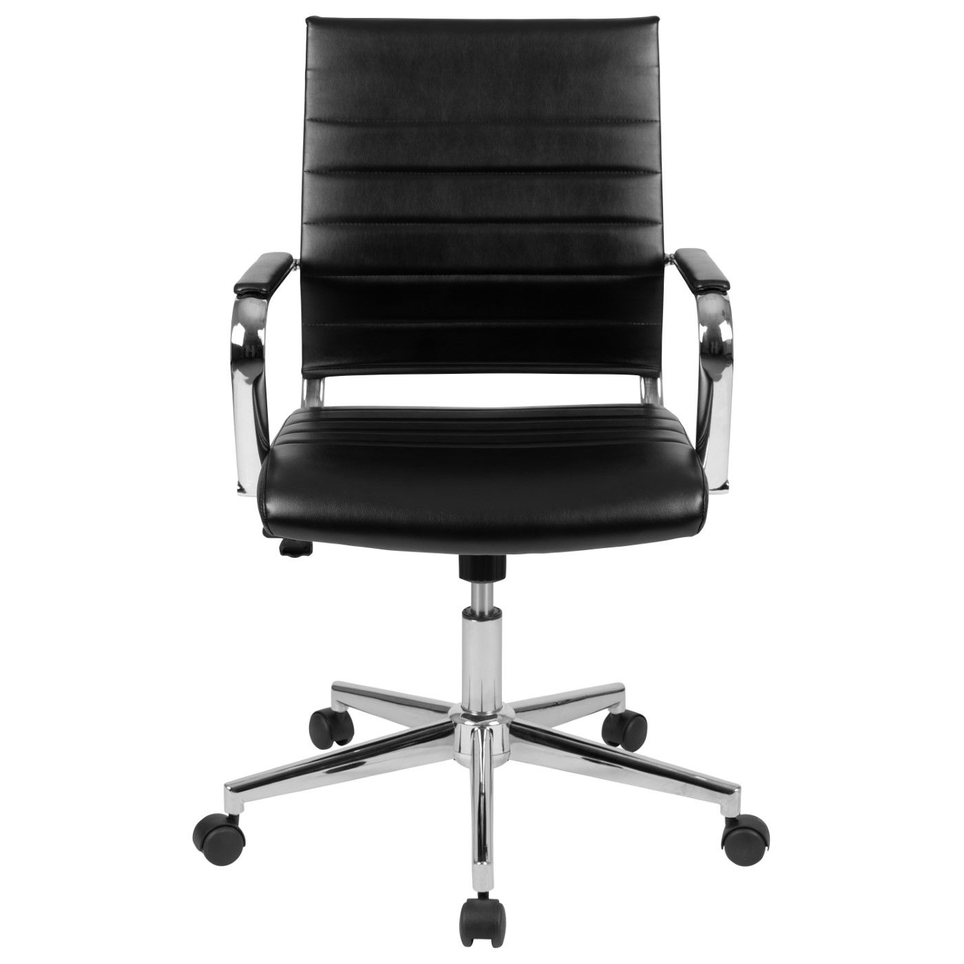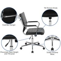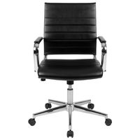 MID-BACK BLACK LEATHERSOFT CONTEMPORARY RIBBED EXECUTIVE SWIVEL OFFICE CHAIR