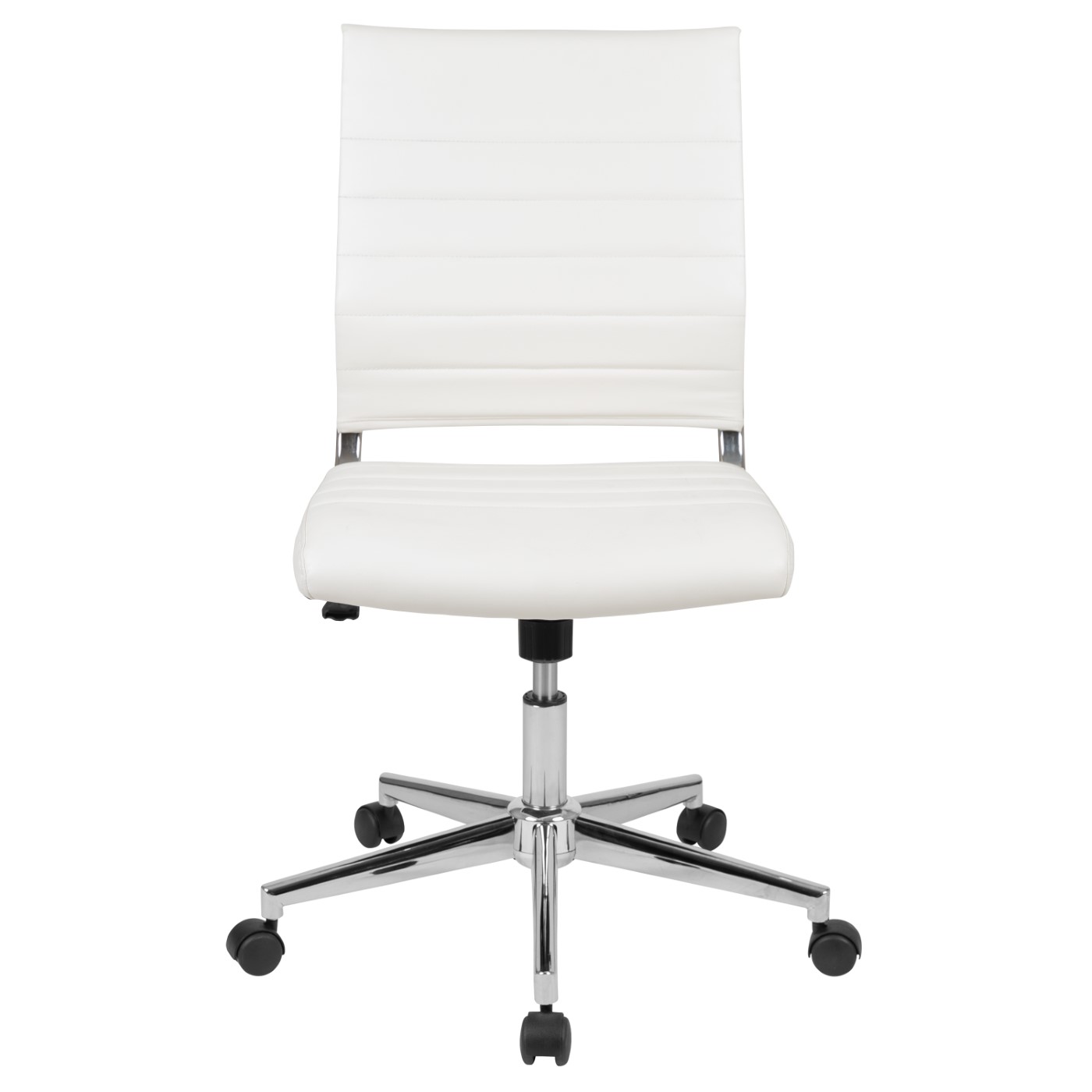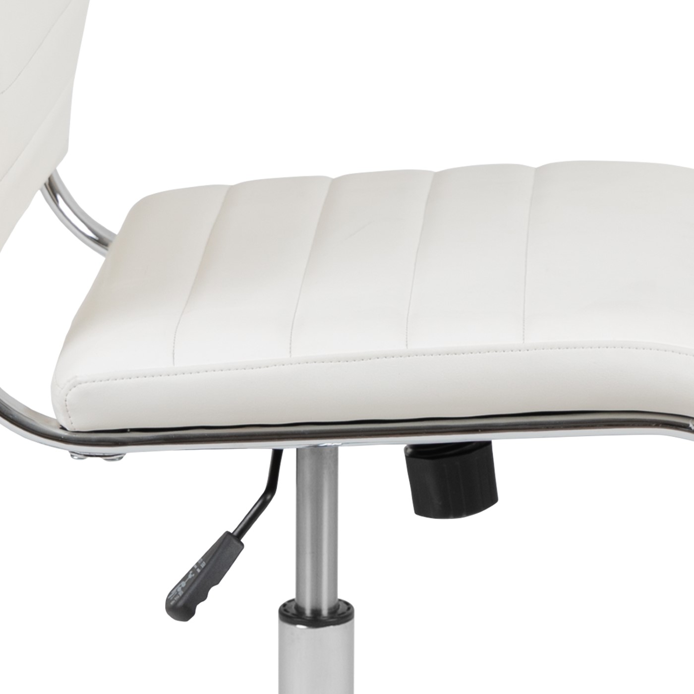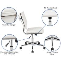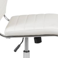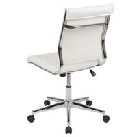 MID-BACK ARMLESS WHITE LEATHERSOFT CONTEMPORARY RIBBED EXECUTIVE SWIVEL OFFICE CHAIR
