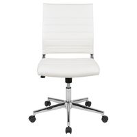 MID-BACK ARMLESS WHITE LEATHERSOFT CONTEMPORARY RIBBED EXECUTIVE SWIVEL OFFICE CHAIR: FREE SHIPPING!