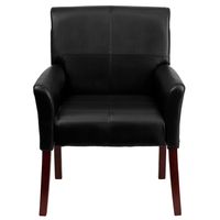 BLACK LEATHERSOFT EXECUTIVE SIDE RECEPTION CHAIR WITH MAHOGANY LEGS: FREE SHIPPING!