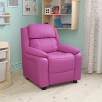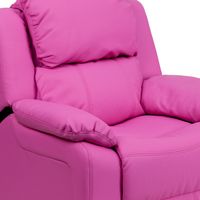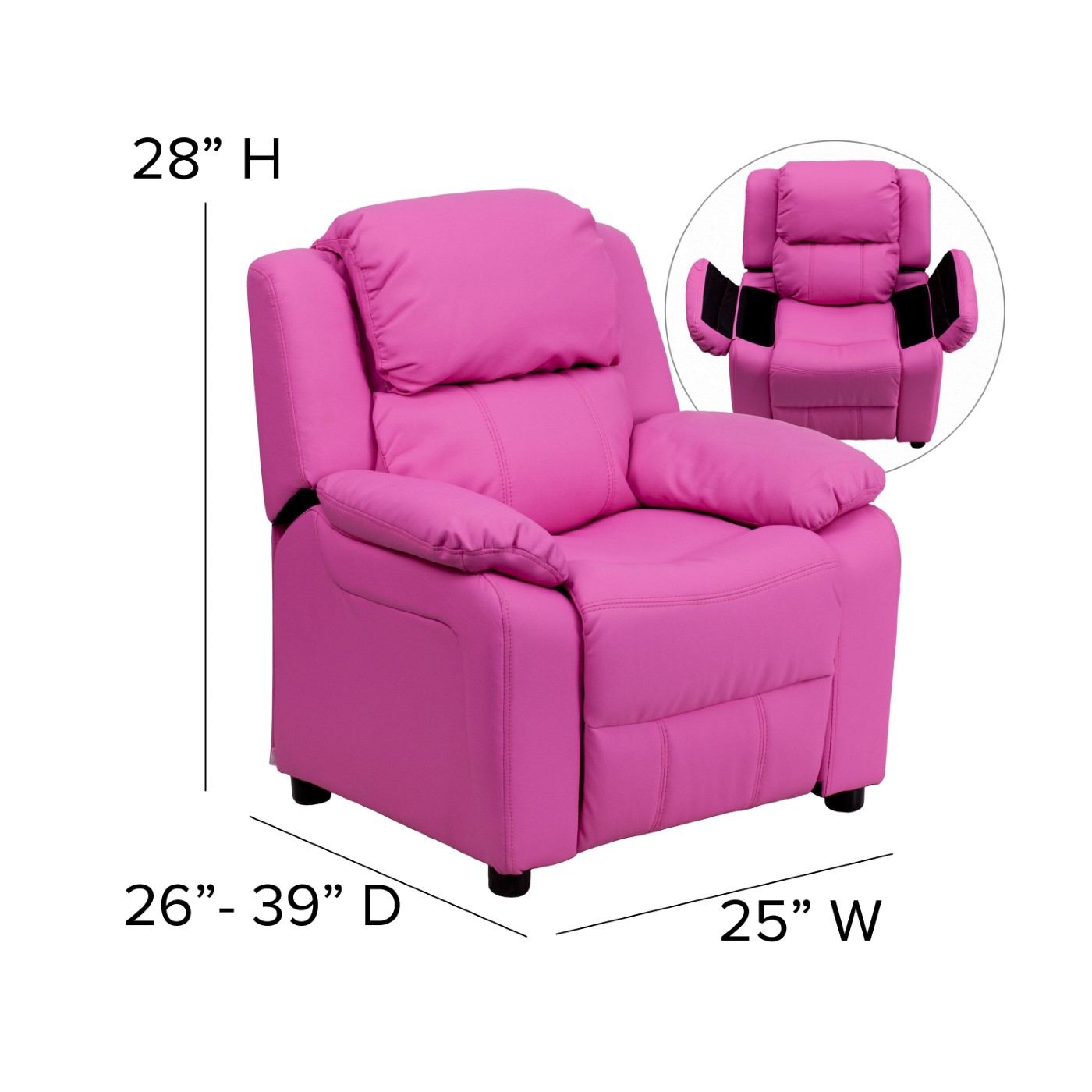 DELUXE PADDED CONTEMPORARY HOT PINK VINYL KIDS RECLINER WITH STORAGE ARMS