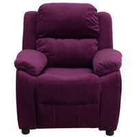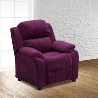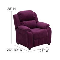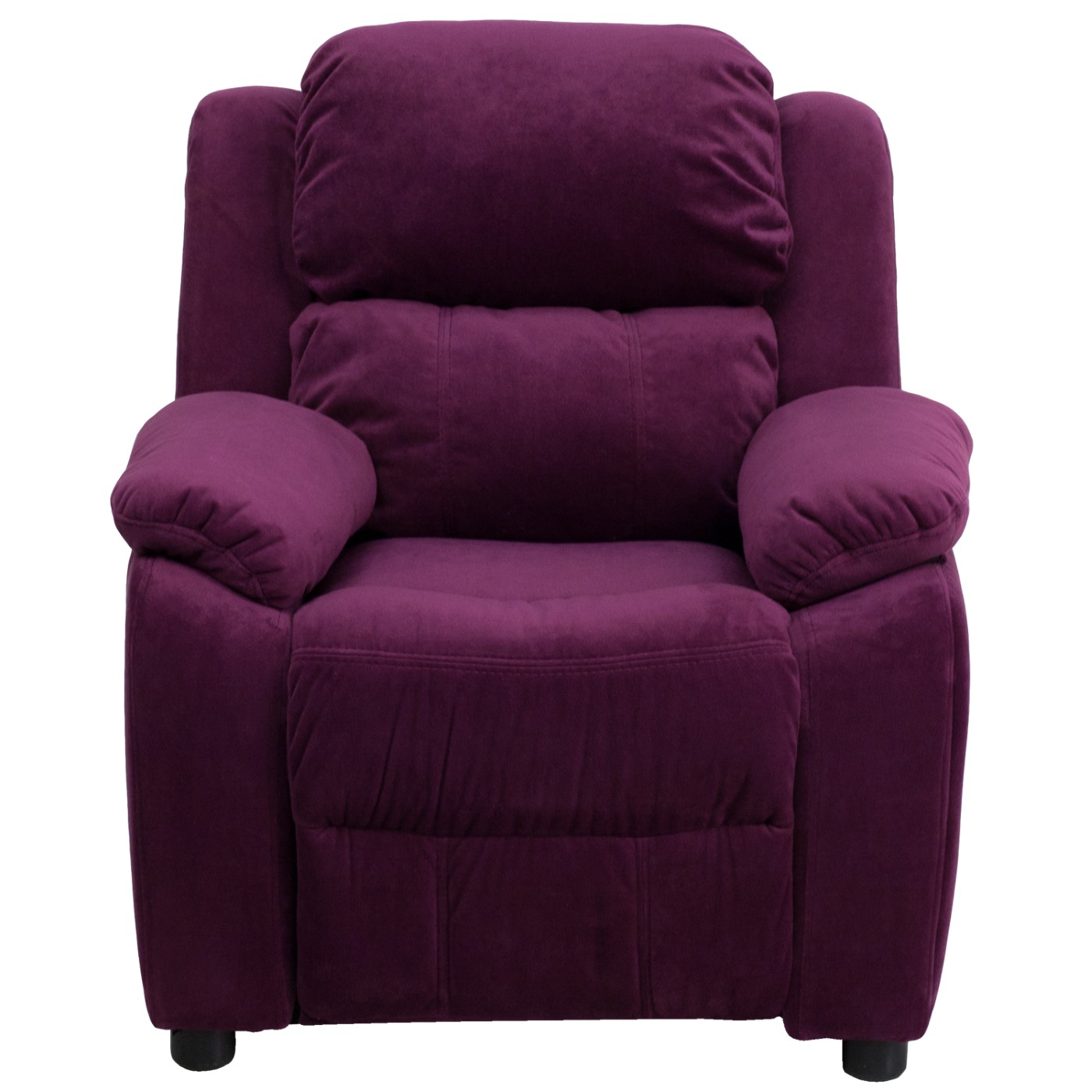 DELUXE PADDED CONTEMPORARY PURPLE MICROFIBER KIDS RECLINER WITH STORAGE ARMS