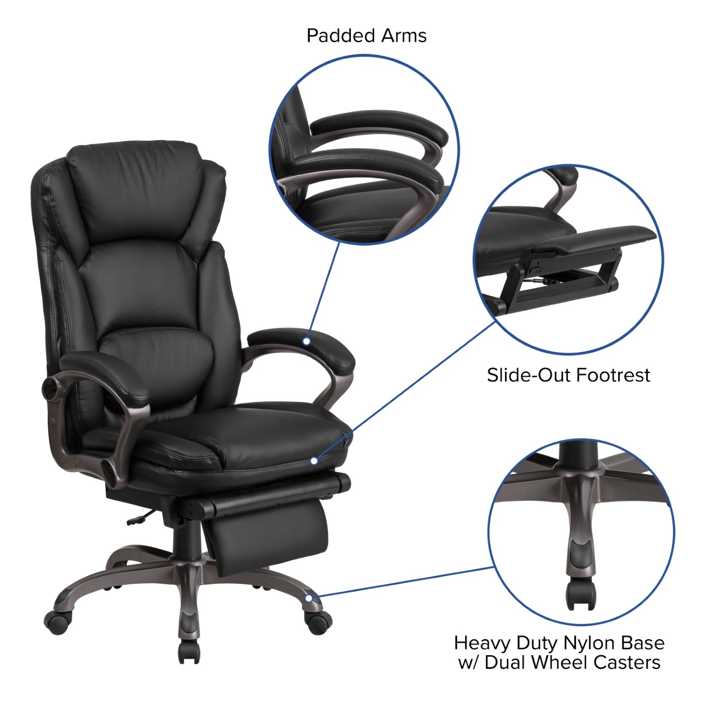 HIGH BACK BLACK LEATHERSOFT EXECUTIVE RECLINING ERGONOMIC SWIVEL OFFICE CHAIR WITH OUTER LUMBAR CUSHION AND ARMS