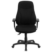 HIGH BACK BLACK FABRIC MULTIFUNCTION SWIVEL ERGONOMIC TASK OFFICE CHAIR WITH ADJUSTABLE ARMS