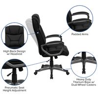 HIGH BACK BLACK LEATHERSOFT EXECUTIVE SWIVEL OFFICE CHAIR WITH ARMS