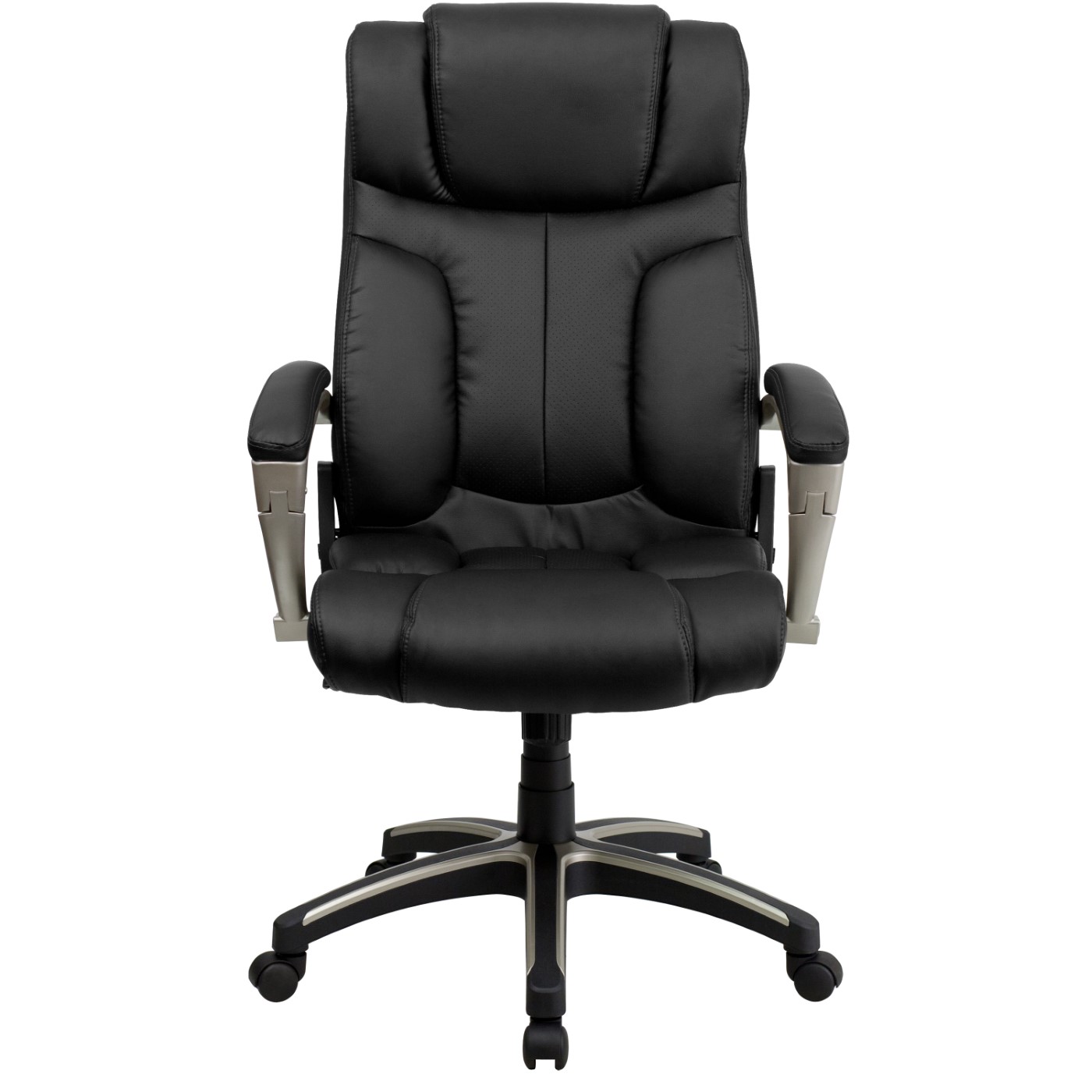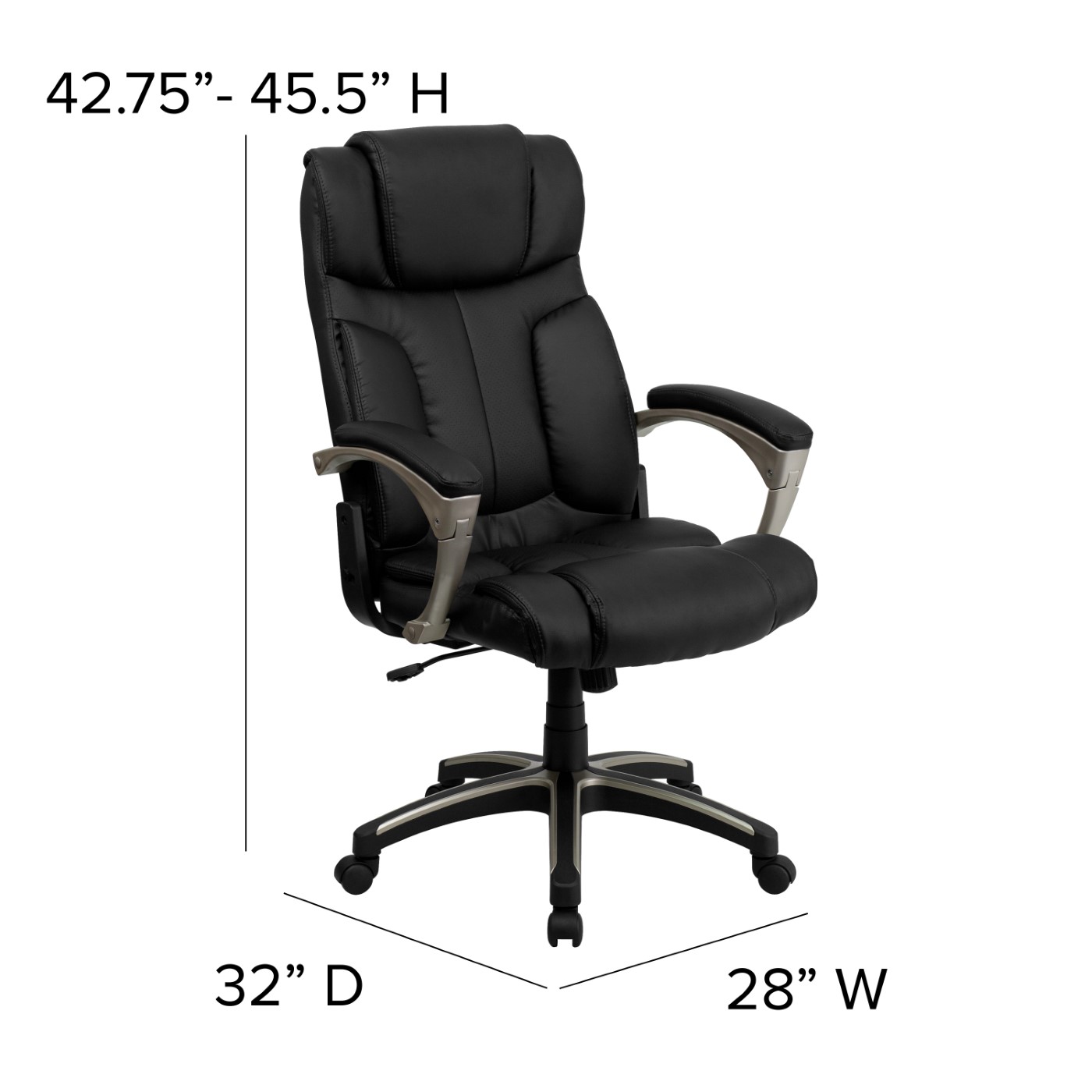 HIGH BACK FOLDING BLACK LEATHERSOFT EXECUTIVE SWIVEL OFFICE CHAIR WITH ARMS