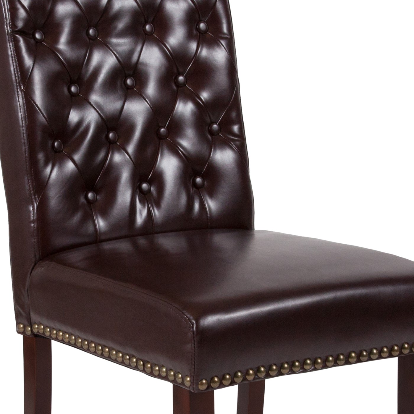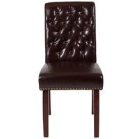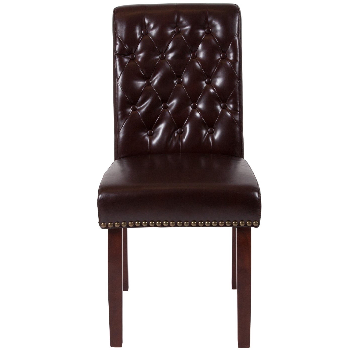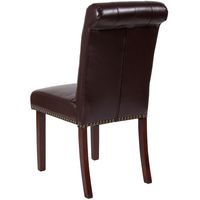 TOUGH ENOUGH SERIES BROWN LEATHERSOFT PARSONS CHAIR WITH ROLLED BACK, ACCENT NAIL TRIM AND WALNUT FINISH