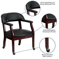 BLACK VINYL LUXURIOUS CONFERENCE CHAIR WITH ACCENT NAIL TRIM AND CASTERS