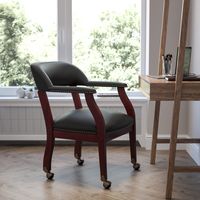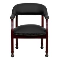 BLACK LEATHERSOFT CONFERENCE CHAIR WITH ACCENT NAIL TRIM AND CASTERS