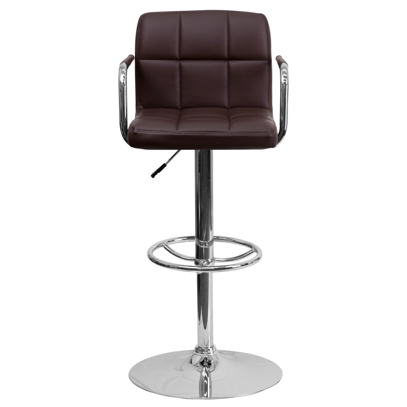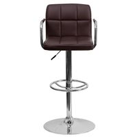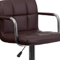 CONTEMPORARY BROWN QUILTED VINYL ADJUSTABLE HEIGHT BARSTOOL WITH ARMS AND CHROME BASE: FREE SHIPPING!