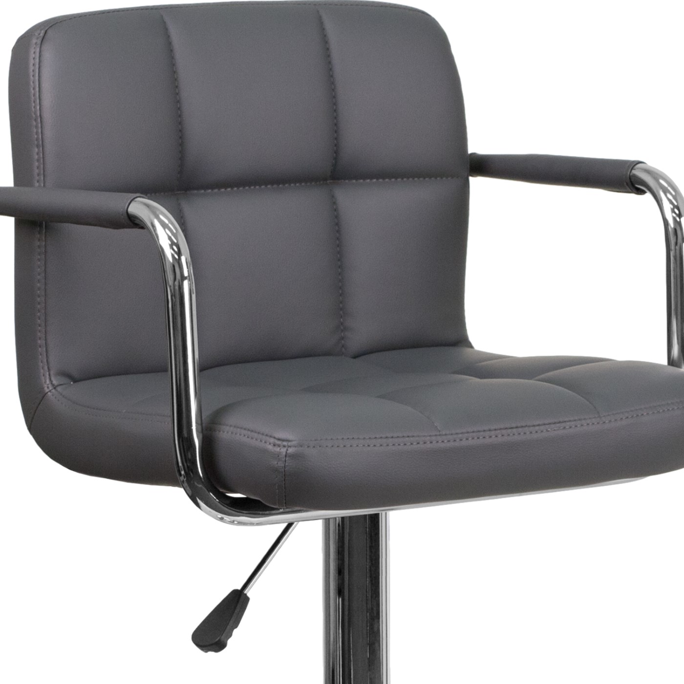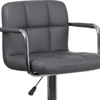 CONTEMPORARY GRAY QUILTED VINYL ADJUSTABLE HEIGHT BARSTOOL WITH ARMS AND CHROME BASE: FREE SHIPPING!