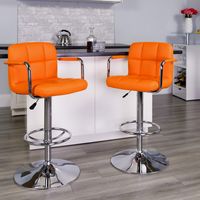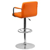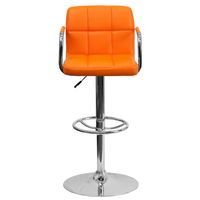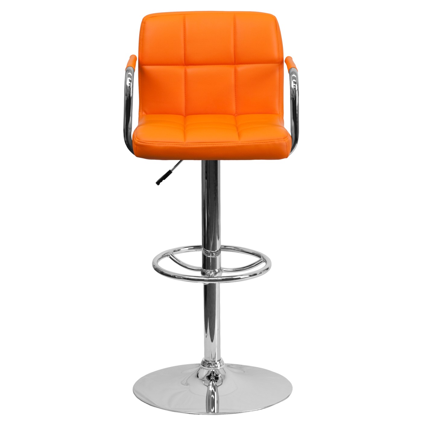 CONTEMPORARY ORANGE QUILTED VINYL ADJUSTABLE HEIGHT BARSTOOL WITH ARMS AND CHROME BASE: FREE SHIPPING!