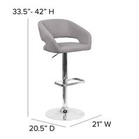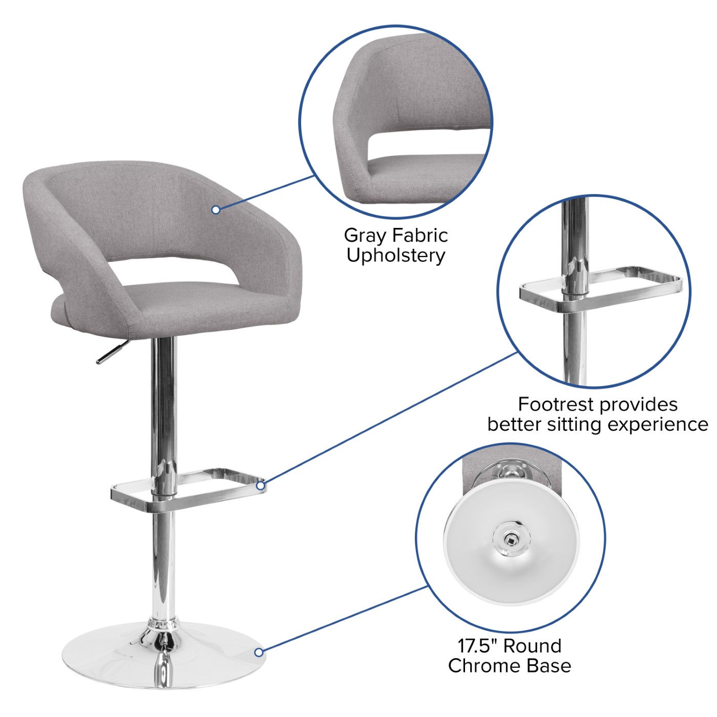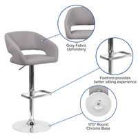 CONTEMPORARY GRAY FABRIC ADJUSTABLE HEIGHT BARSTOOL WITH ROUNDED MID-BACK AND CHROME BASE: FREE SHIPPING!