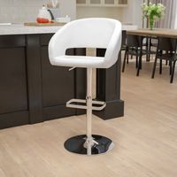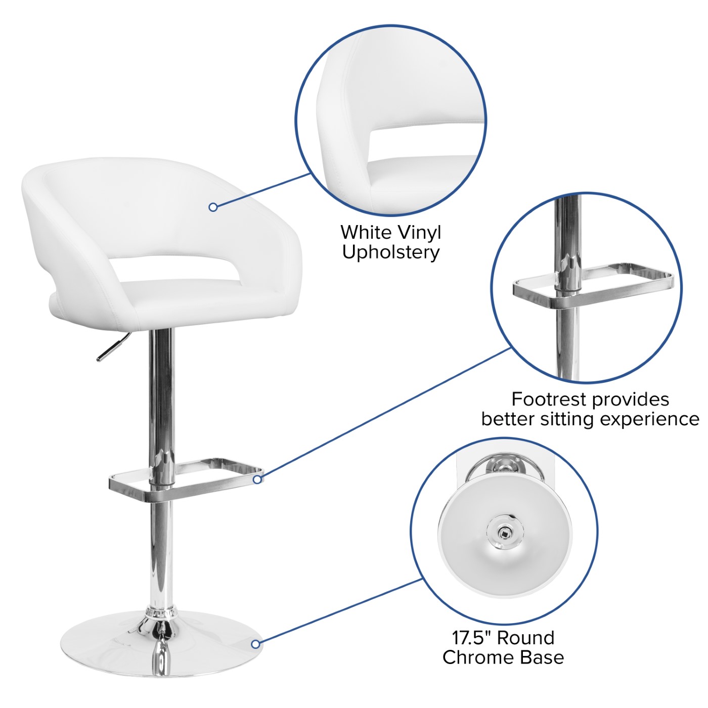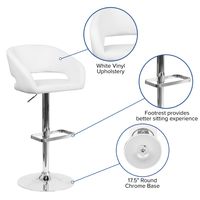 CONTEMPORARY WHITE VINYL ADJUSTABLE HEIGHT BARSTOOL WITH ROUNDED MID-BACK AND CHROME BASE: FREE SHIPPING!