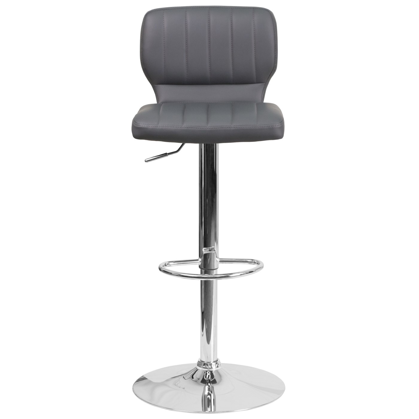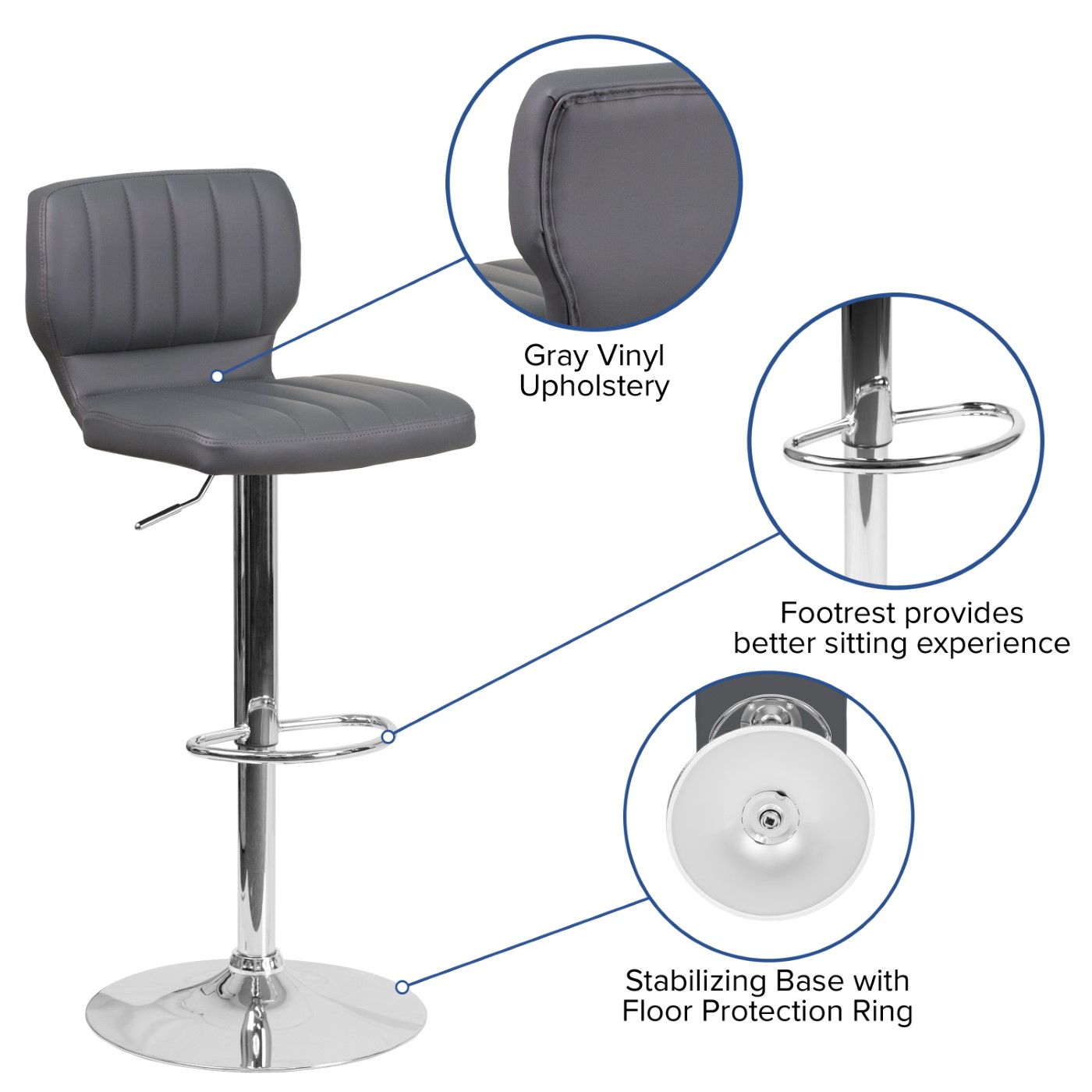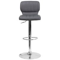 CONTEMPORARY GRAY VINYL ADJUSTABLE HEIGHT BARSTOOL WITH VERTICAL STITCH BACK AND CHROME BASE: FREE SHIPPING!
