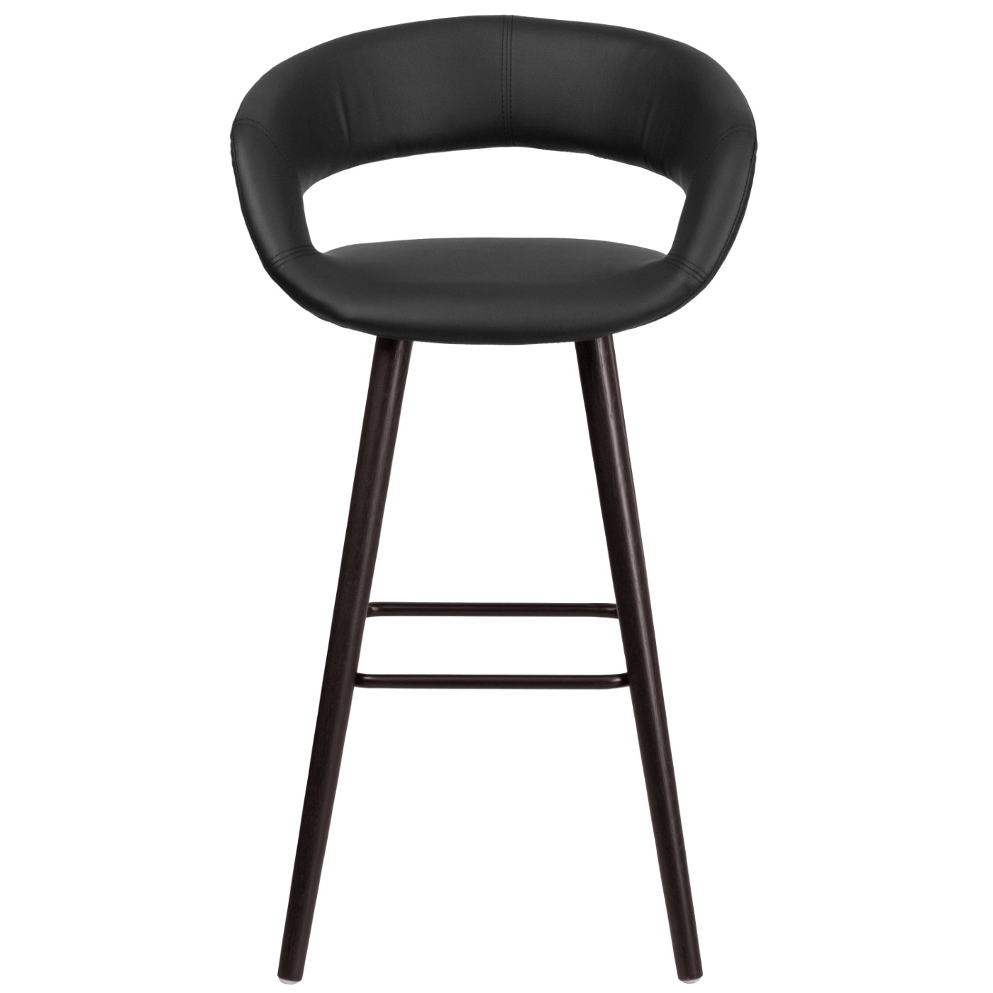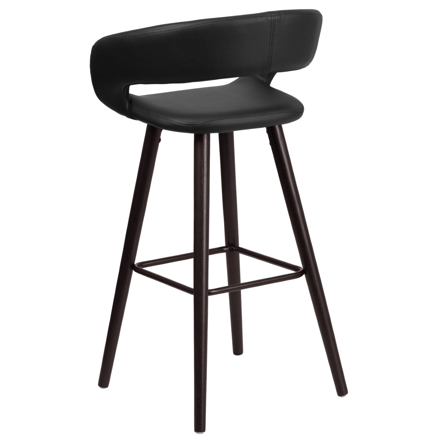 BRYNN SERIES 29'' HIGH CONTEMPORARY CAPPUCCINO WOOD BARSTOOL IN BLACK VINYL