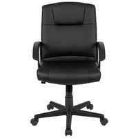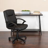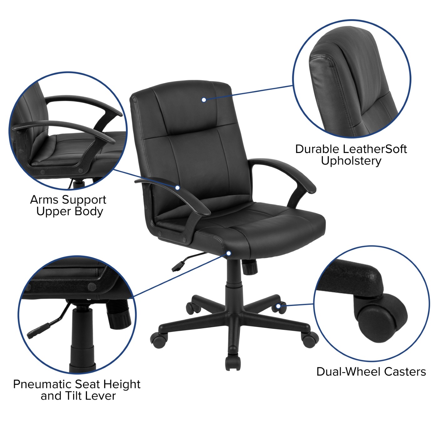 FLASH FUNDAMENTALS MID-BACK BLACK LEATHERSOFT-PADDED TASK OFFICE CHAIR WITH ARMS, BIFMA CERTIFIED