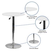 23.75'' ROUND ADJUSTABLE HEIGHT WHITE WOOD TABLE (ADJUSTABLE RANGE 26.25'' - 35.75''): FREE SHIPPING!