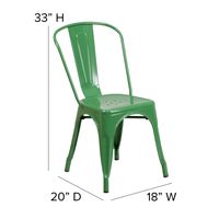 COMMERCIAL GRADE GREEN METAL INDOOR-OUTDOOR STACKABLE CHAIR
