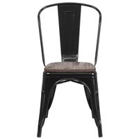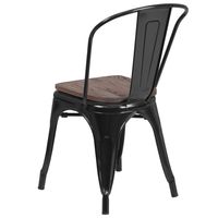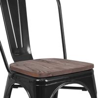 BLACK METAL STACKABLE CHAIR WITH WOOD SEAT