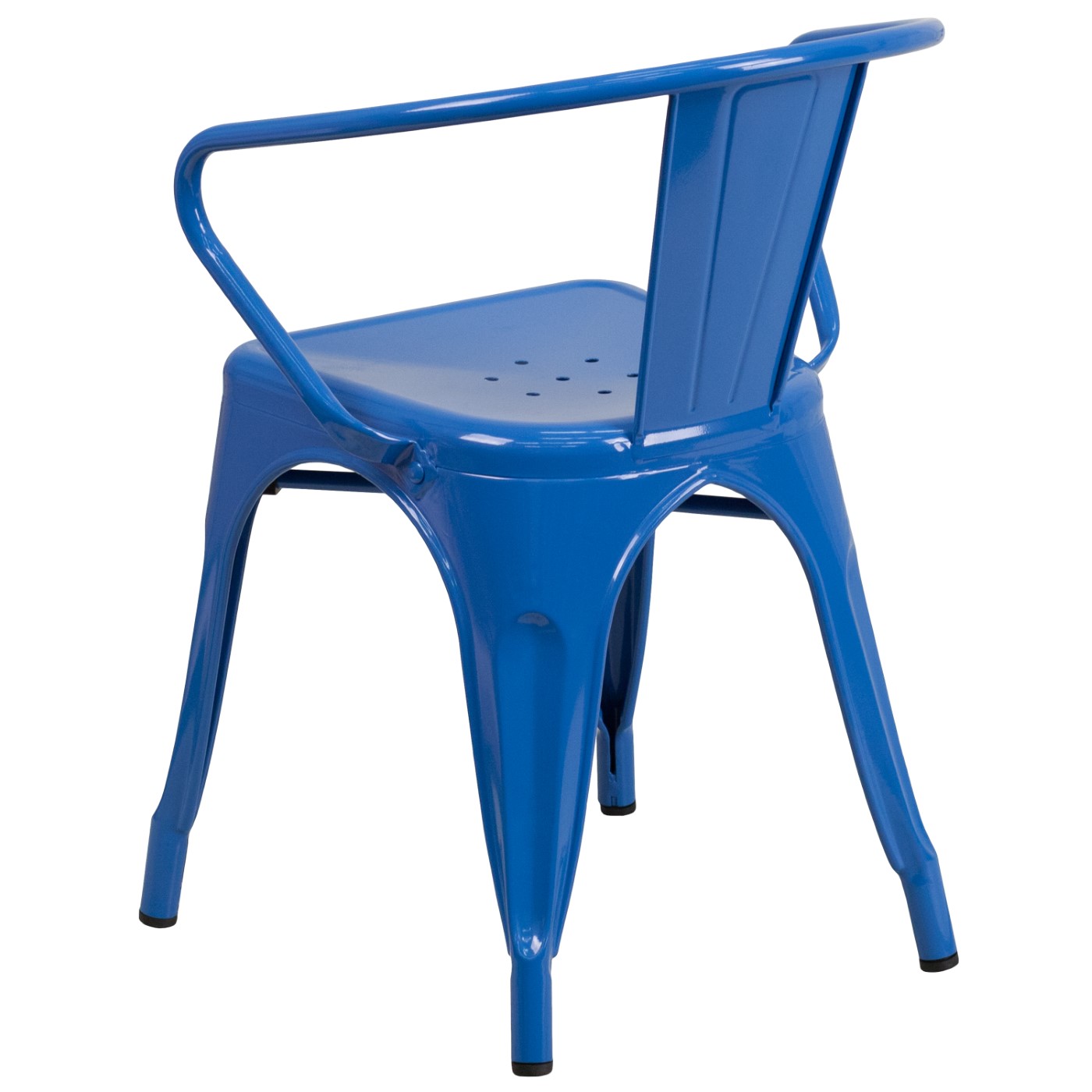 COMMERCIAL GRADE BLUE METAL INDOOR-OUTDOOR CHAIR WITH ARMS