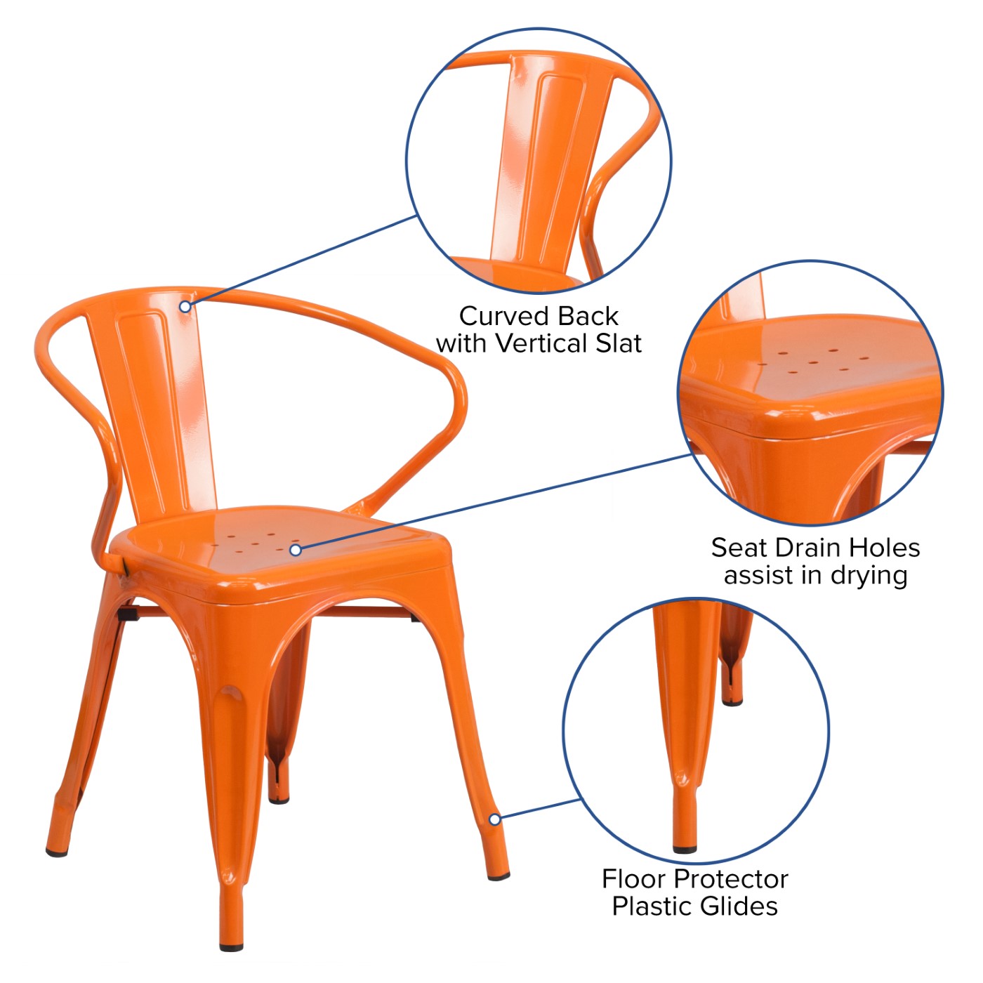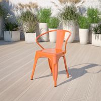 COMMERCIAL GRADE ORANGE METAL INDOOR-OUTDOOR CHAIR WITH ARMS