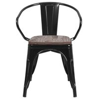 BLACK METAL CHAIR WITH WOOD SEAT AND ARMS