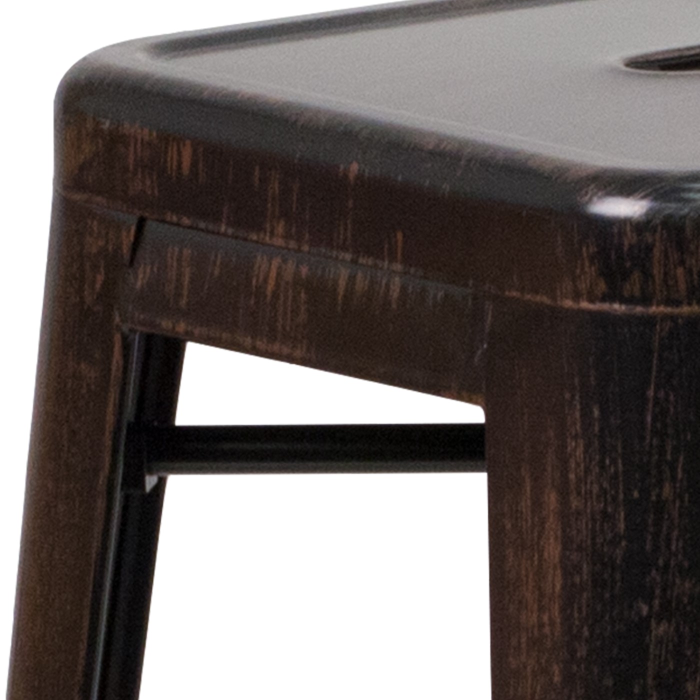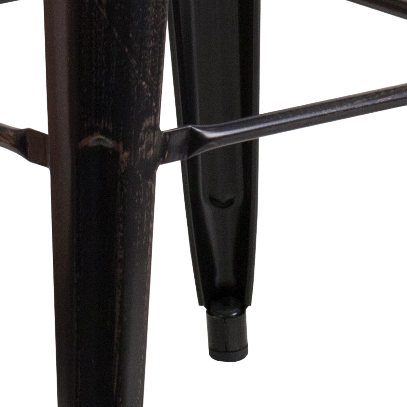 COMMERCIAL GRADE 30" HIGH BACKLESS BLACK-ANTIQUE GOLD METAL INDOOR-OUTDOOR BARSTOOL WITH SQUARE SEAT