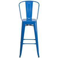 COMMERCIAL GRADE 30" HIGH BLUE METAL INDOOR-OUTDOOR BARSTOOL WITH REMOVABLE BACK: FREE SHIPPING!