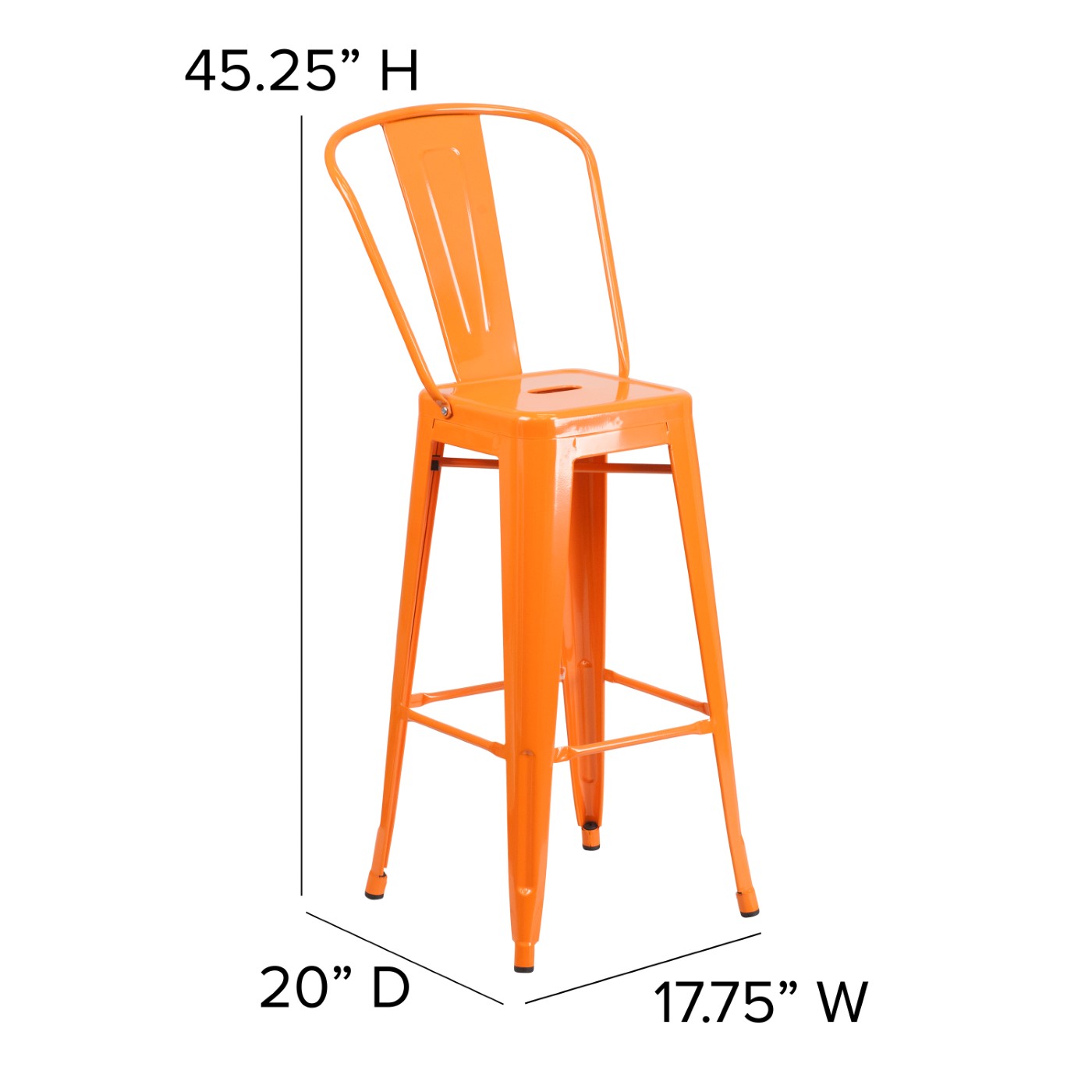 COMMERCIAL GRADE 30" HIGH ORANGE METAL INDOOR-OUTDOOR BARSTOOL WITH REMOVABLE BACK: FREE SHIPPING!