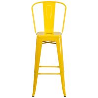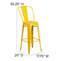 COMMERCIAL GRADE 30" HIGH YELLOW METAL INDOOR-OUTDOOR BARSTOOL WITH REMOVABLE BACK: FREE SHIPPING!