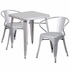 COMMERCIAL GRADE 23.75" SQUARE SILVER METAL INDOOR-OUTDOOR TABLE SET WITH 2 ARM CHAIRS