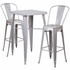 COMMERCIAL GRADE 23.75" SQUARE SILVER METAL INDOOR-OUTDOOR BAR TABLE SET WITH 2 STOOLS WITH BACKS