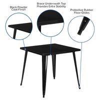 COMMERCIAL GRADE 31.75" SQUARE BLACK METAL INDOOR-OUTDOOR TABLE