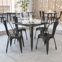 COMMERCIAL GRADE 35.5" SQUARE BLACK METAL INDOOR-OUTDOOR TABLE