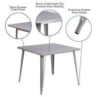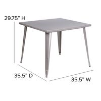 COMMERCIAL GRADE 35.5" SQUARE SILVER METAL INDOOR-OUTDOOR TABLE