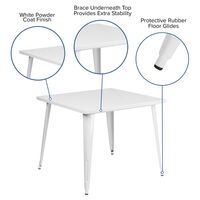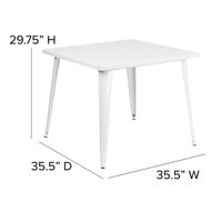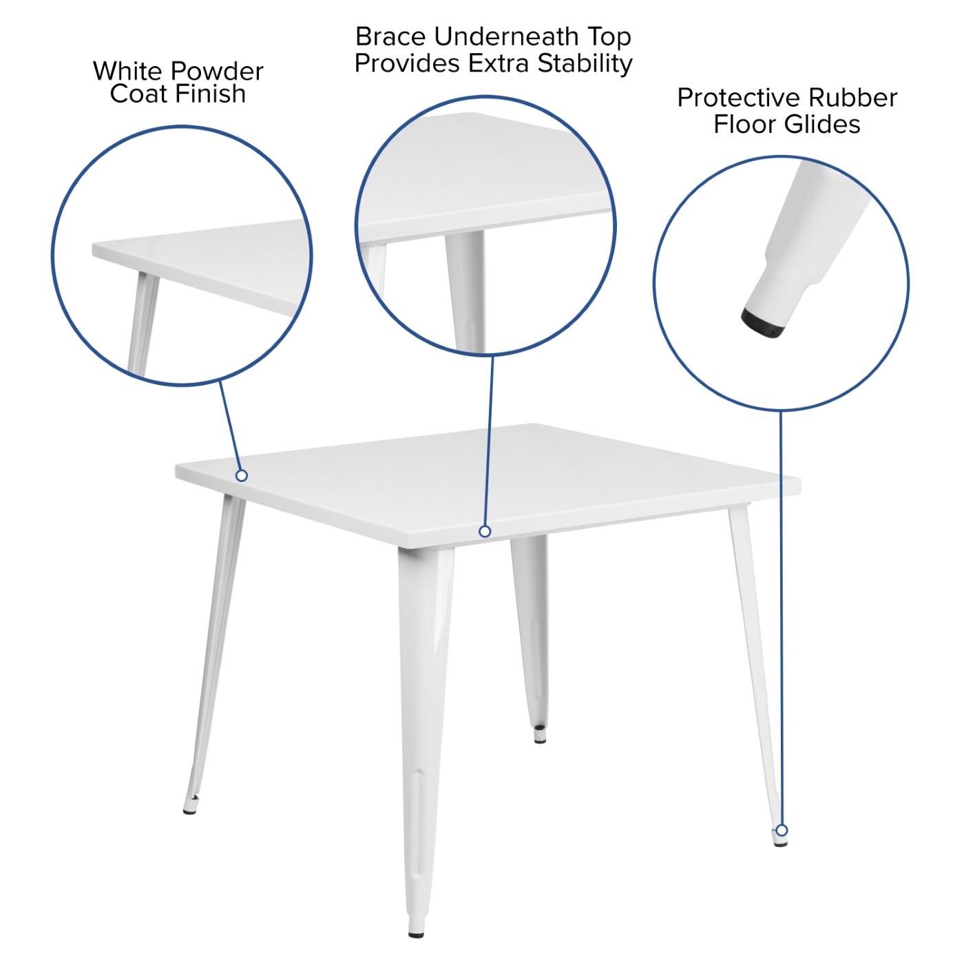 COMMERCIAL GRADE 35.5" SQUARE WHITE METAL INDOOR-OUTDOOR TABLE