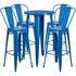 COMMERCIAL GRADE 24" ROUND BLUE METAL INDOOR-OUTDOOR BAR TABLE SET WITH 4 CAFE STOOLS: FREE SHIPPING!
