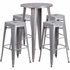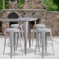 COMMERCIAL GRADE 24" ROUND SILVER METAL INDOOR-OUTDOOR BAR TABLE SET WITH 4 SQUARE SEAT BACKLESS STOOLS