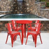 COMMERCIAL GRADE 24" ROUND RED METAL INDOOR-OUTDOOR TABLE SET WITH 4 ARM CHAIRS