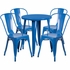 COMMERCIAL GRADE 24" ROUND BLUE METAL INDOOR-OUTDOOR TABLE SET WITH 4 CAFE CHAIRS