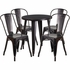 COMMERCIAL GRADE 24" ROUND BLACK-ANTIQUE GOLD METAL INDOOR-OUTDOOR TABLE SET WITH 4 CAFE CHAIRS