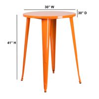 COMMERCIAL GRADE 30" ROUND ORANGE METAL INDOOR-OUTDOOR BAR HEIGHT TABLE