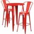 COMMERCIAL GRADE 30" ROUND RED METAL INDOOR-OUTDOOR BAR TABLE SET WITH 2 CAFE STOOLS