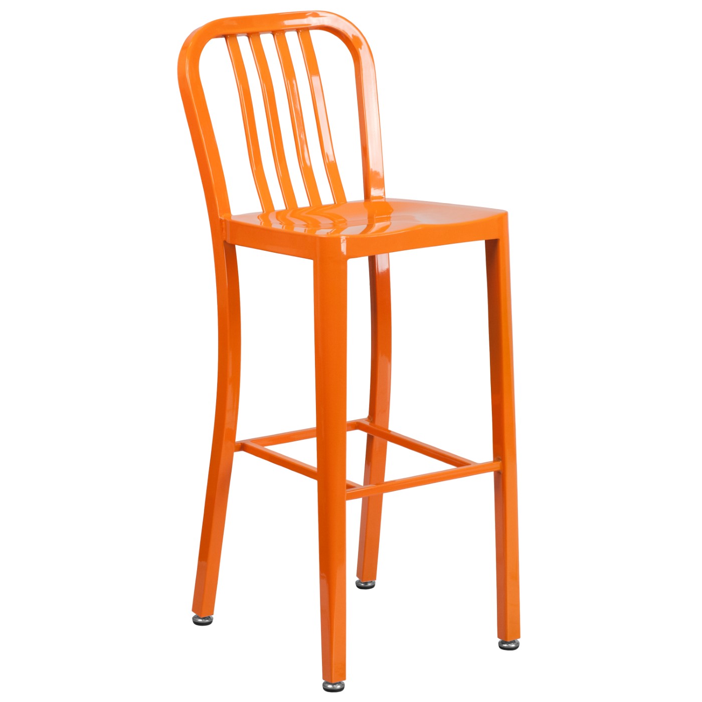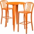 COMMERCIAL GRADE 30" ROUND ORANGE METAL INDOOR-OUTDOOR BAR TABLE SET WITH 2 VERTICAL SLAT BACK STOOLS: FREE SHIPPING!