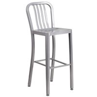 COMMERCIAL GRADE 30" ROUND SILVER METAL INDOOR-OUTDOOR BAR TABLE SET WITH 2 VERTICAL SLAT BACK STOOLS: FREE SHIPPING!
