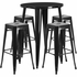 COMMERCIAL GRADE 30" ROUND BLACK METAL INDOOR-OUTDOOR BAR TABLE SET WITH 4 SQUARE SEAT BACKLESS STOOLS