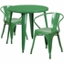 COMMERCIAL GRADE 30" ROUND GREEN METAL INDOOR-OUTDOOR TABLE SET WITH 2 ARM CHAIRS