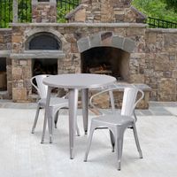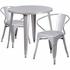 COMMERCIAL GRADE 30" ROUND SILVER METAL INDOOR-OUTDOOR TABLE SET WITH 2 ARM CHAIRS